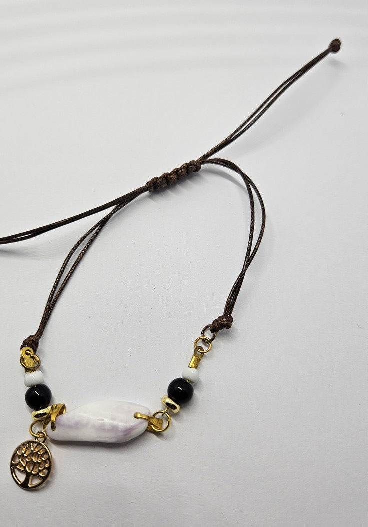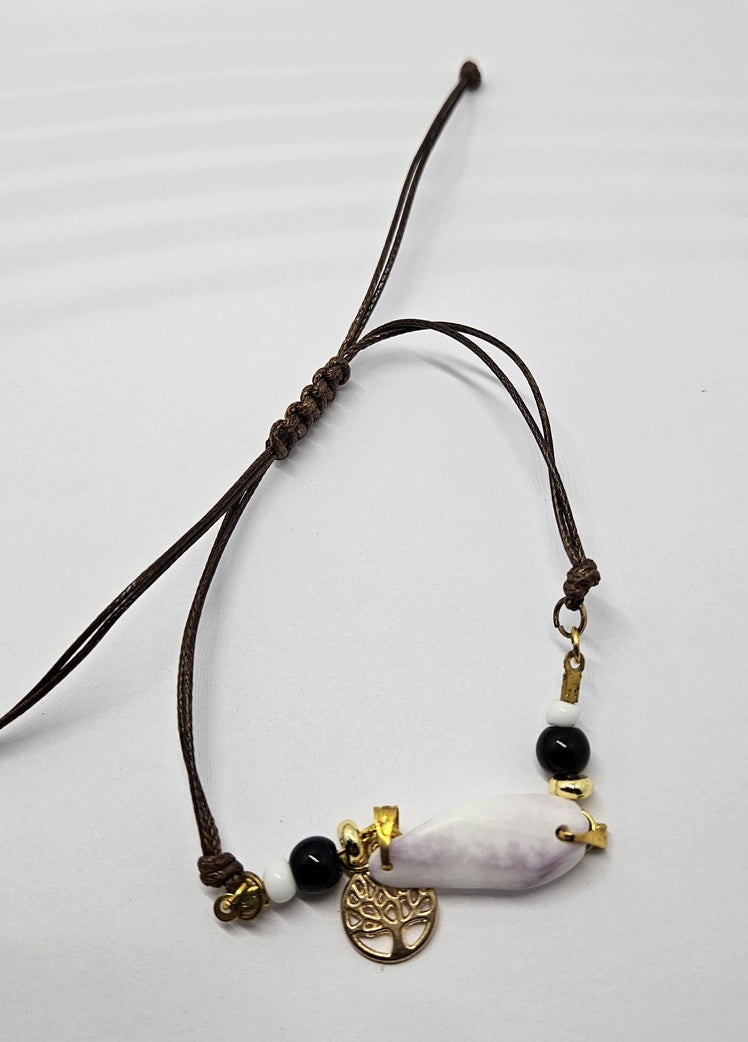 • Bracelet en cordon tressé en polyester et son nœud réglable.