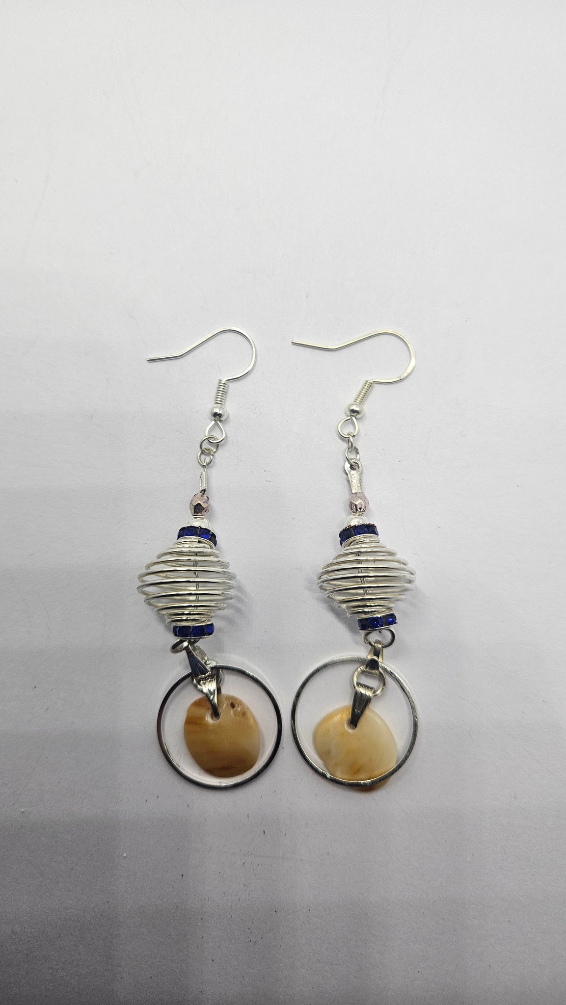 - D'une paire de boucle d'oreille avec ses crochets en argent sterling et ses fragments de coquillage poli par l'océan.