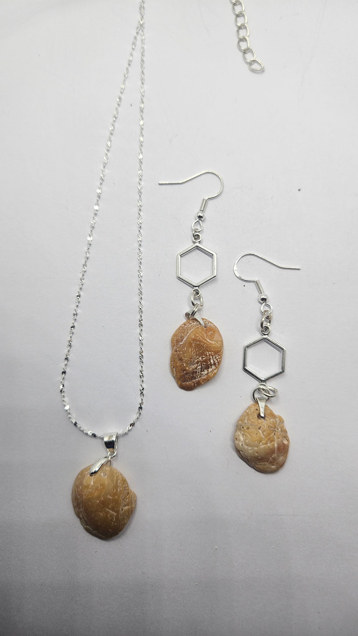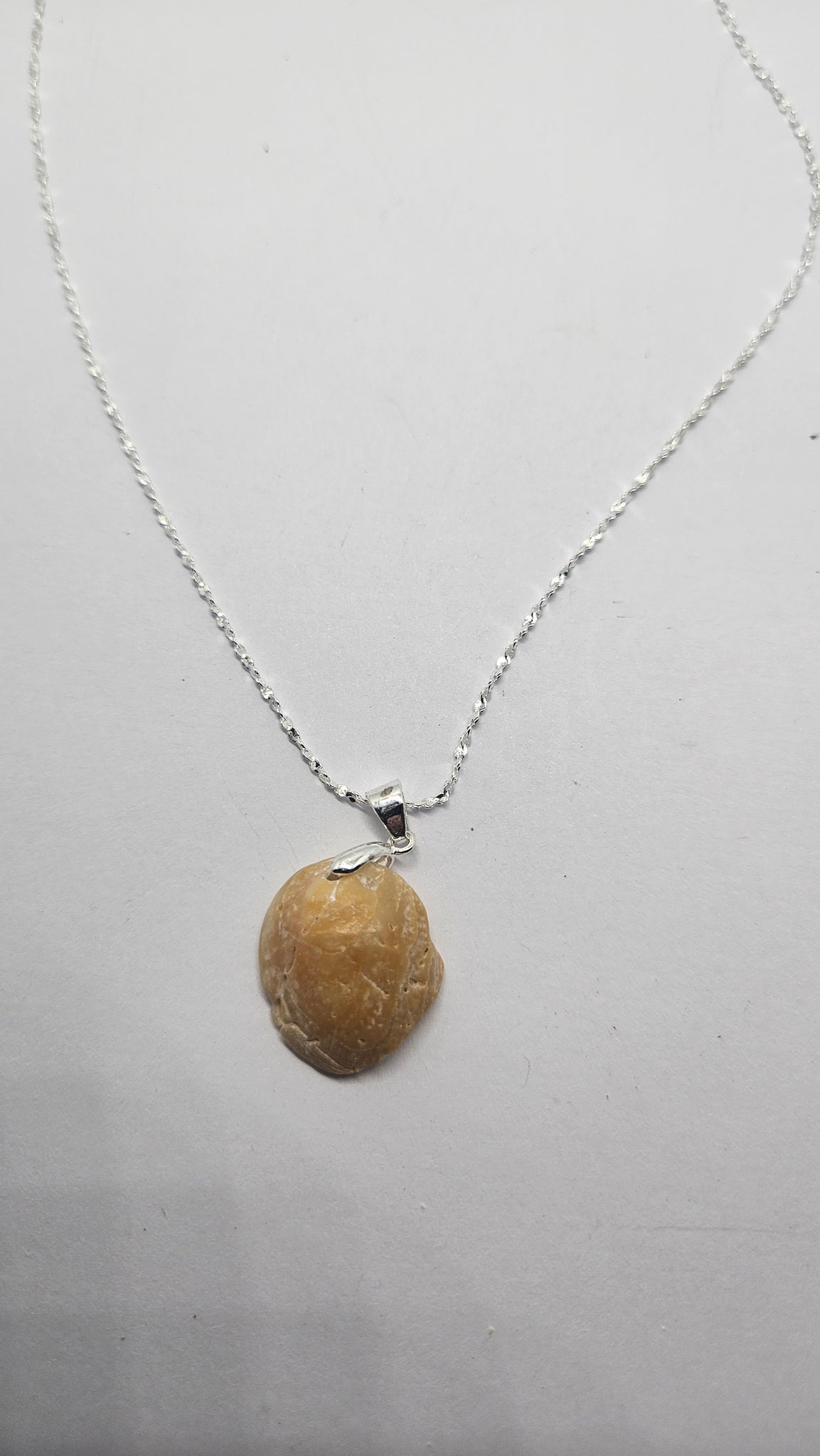 - Collier en chaine torsadée en argent sterling taille 42 cm de Longueur, une rallonge de 5 cm et son pendentif en fragment de coquillage poli par l'océan.