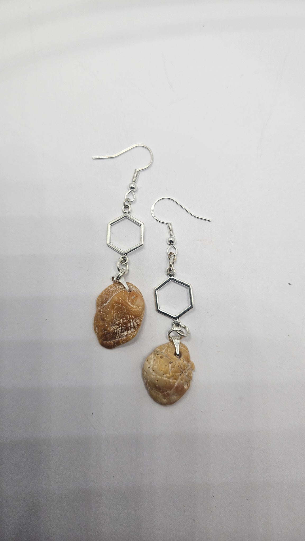 - Paire de boucle d'oreille avec ses crochets en argent sterling et ses fragments de coquillage poli par l'océan.